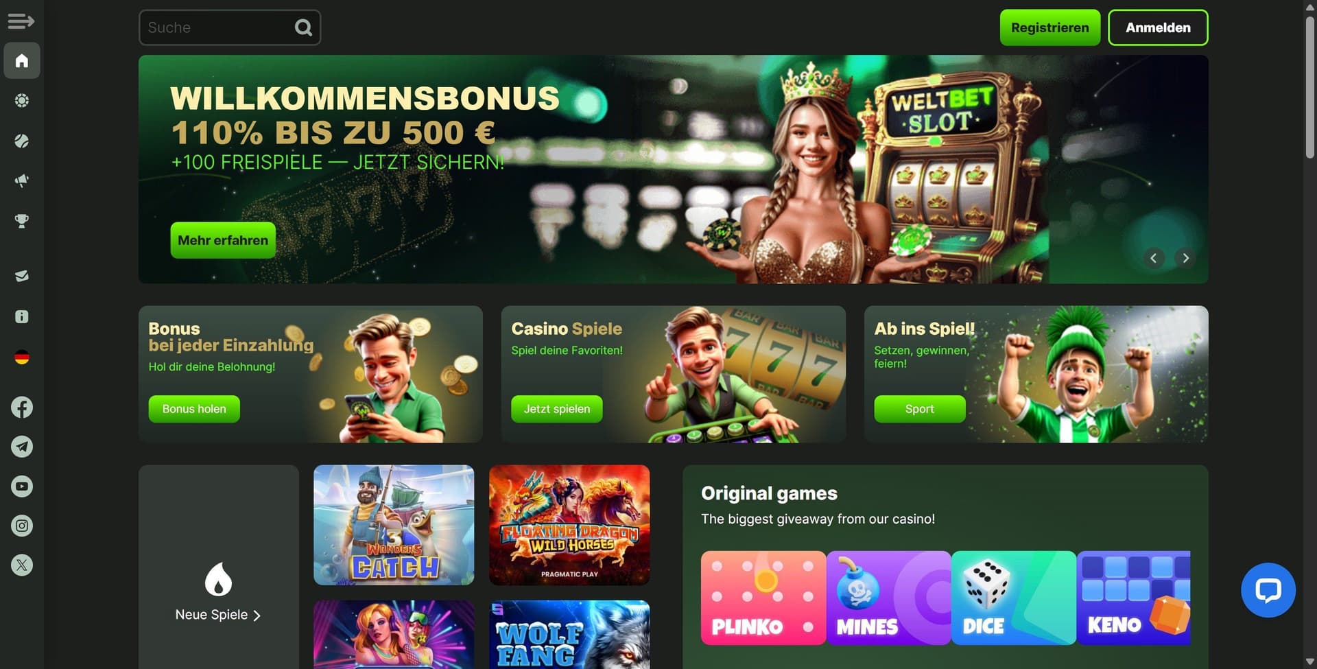 Die Webseite von Weltbet ist übersichtlich aufgebaut und modern gestaltet. In meinem Test finde ich alle wichtigen Bereiche schnell wieder. Casino, Sportwetten und Zahlungsoptionen sind klar getrennt und logisch strukturiert.