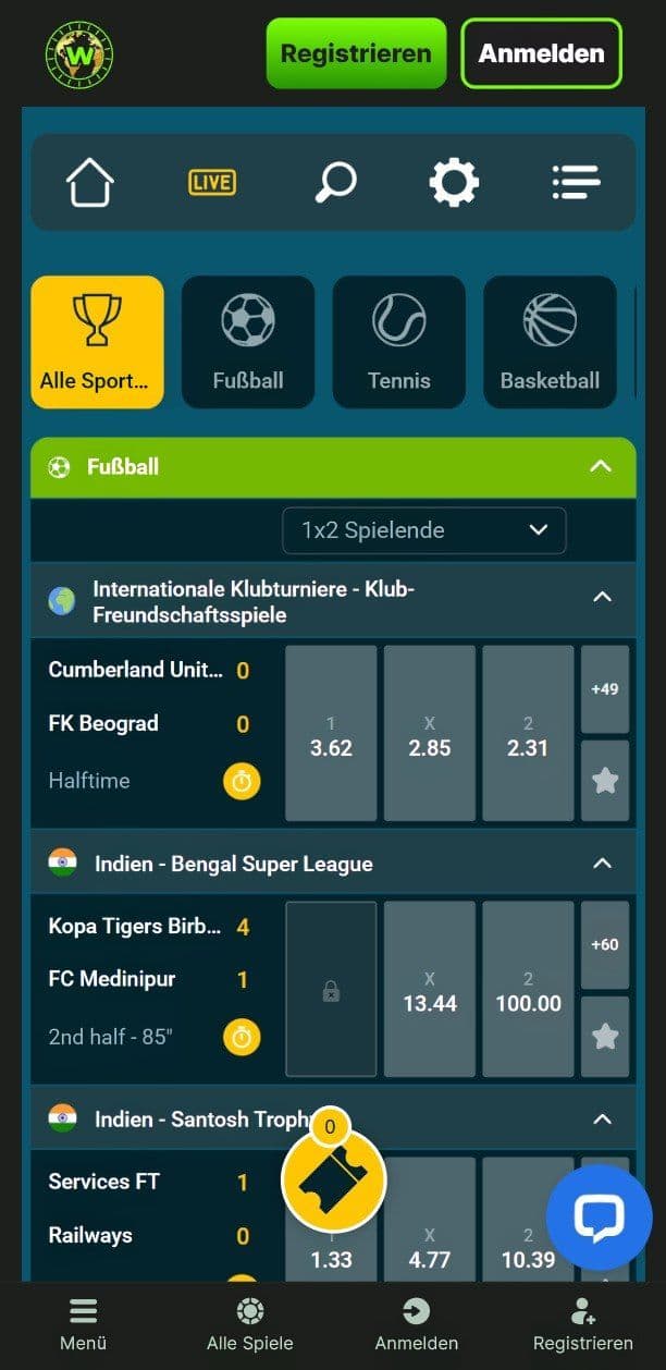 Die Platzierung und Verwaltung der Wetten erfolgt bequem über den Wettschein, der es ermöglicht, verschiedene Wettoptionen zu konfigurieren, Tipps zu kombinieren und bei Bedarf die Cashout-Funktion zu nutzen – auch mobil.
